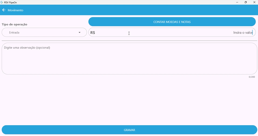 - Valor: insira o valor da movimentação.