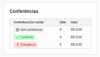 - Conferências em cartão: lista as transações de cartão conferidas entre o apurado pelo o sistema e a conferência informada pelo operador no momento do fechamento do caixa.