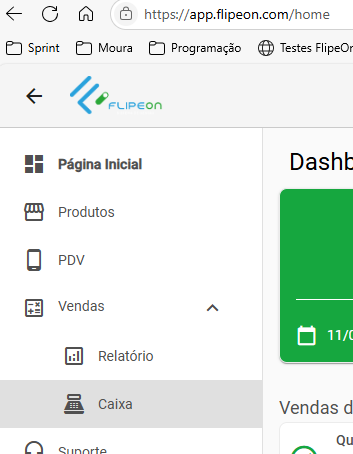 - Acesse o menu Vendas > Relatório de Caixa.