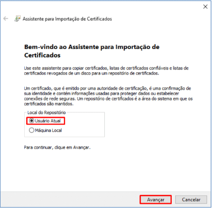 - Seleciona a opção Usuário Atual e pressione em Avançar.