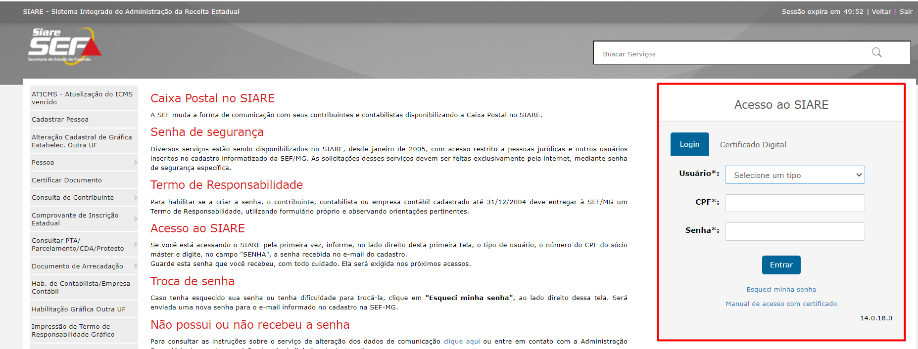 - Acesse a sefaz do estado através do link: https://www2.fazenda.mg.gov.br/sol/