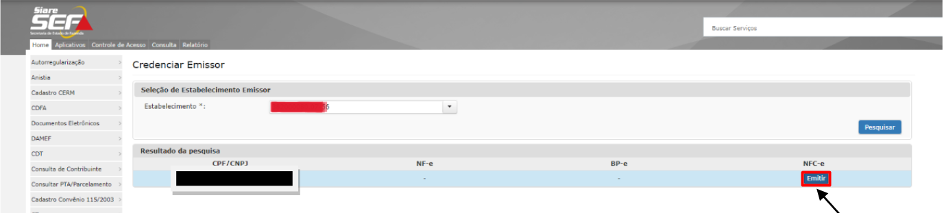 - Na coluna NFC-e clique em Emitir