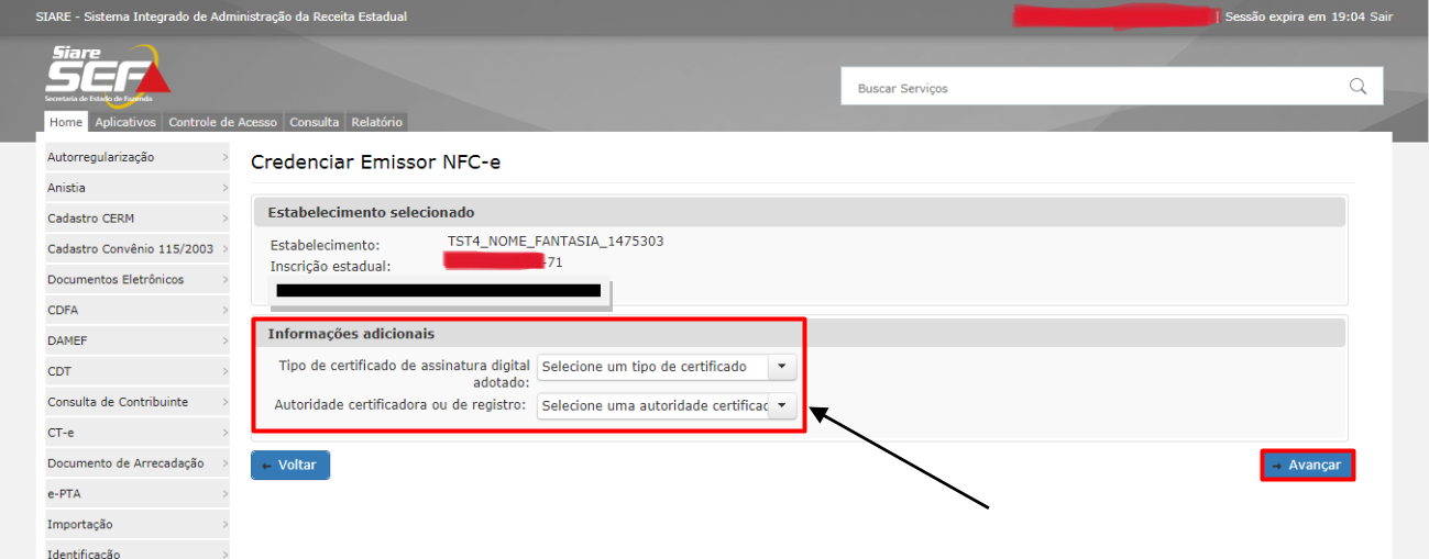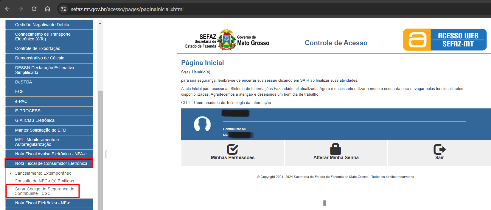 No mesmo sistema de autoatendimento citado acima será possível gerar o CSC.