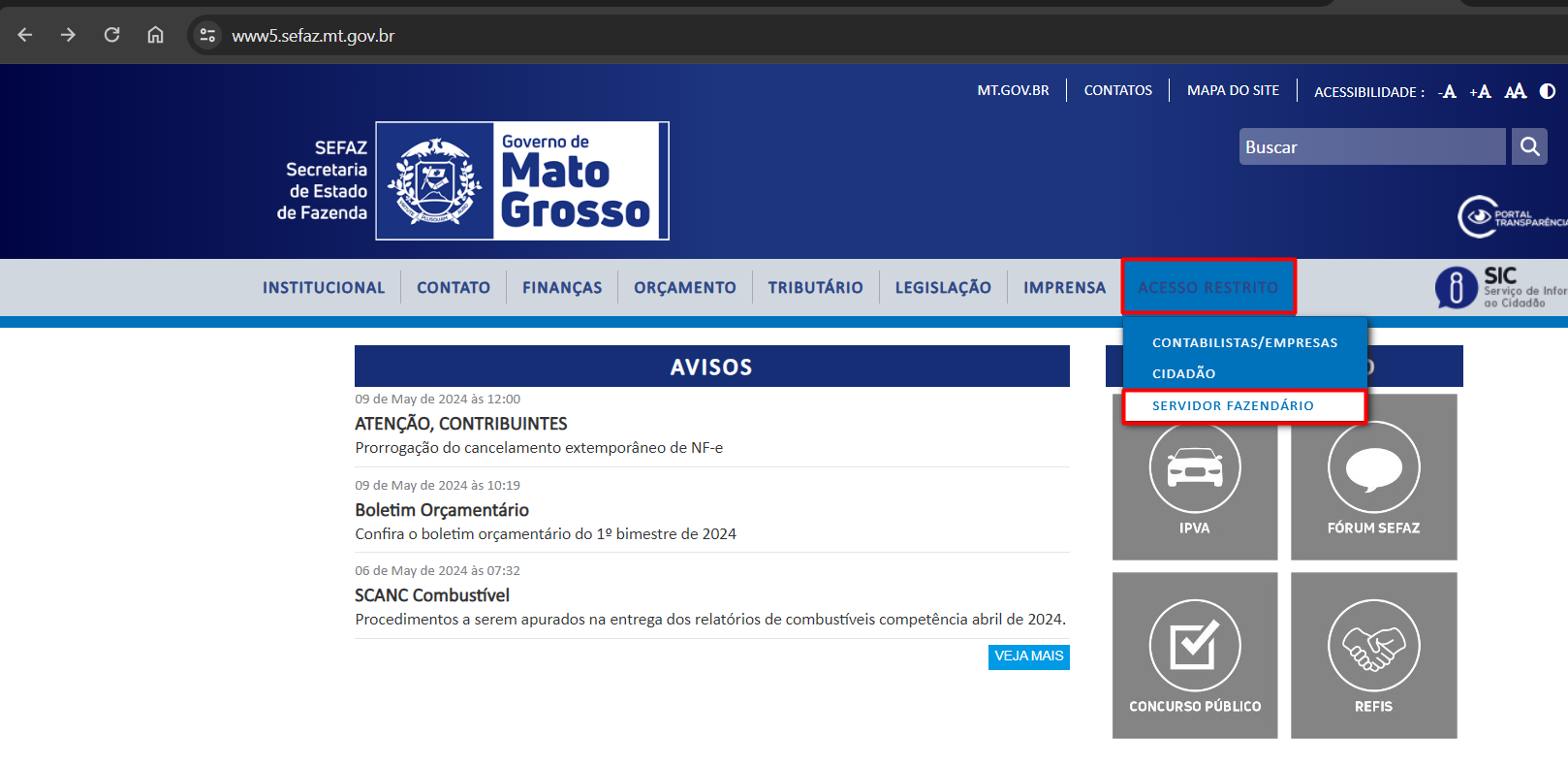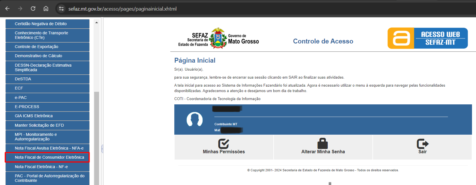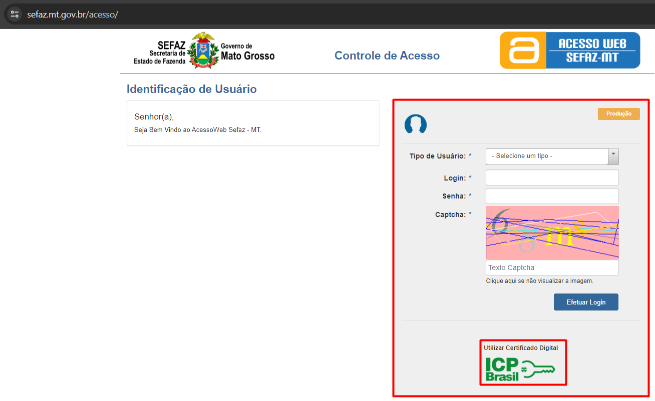 - Acesse o site da SEFAZ do MT pelo link https://www5.sefaz.mt.gov.br