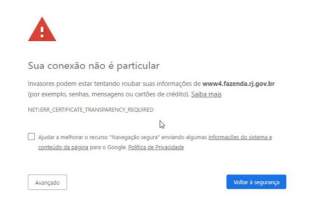 - Pressione em Ir para www4.fazenda.rj.gov.br (não seguro).