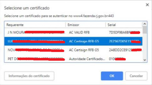 - Selecione seu Certificado Digital e clique em OK.