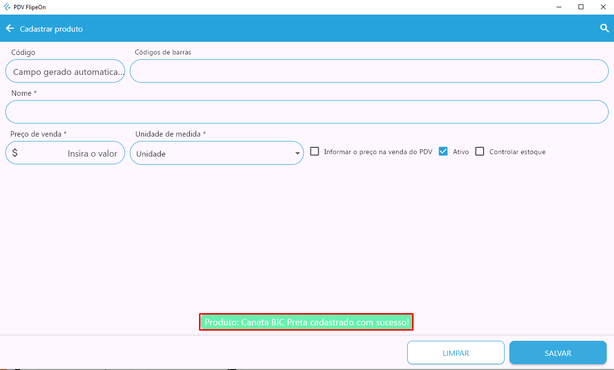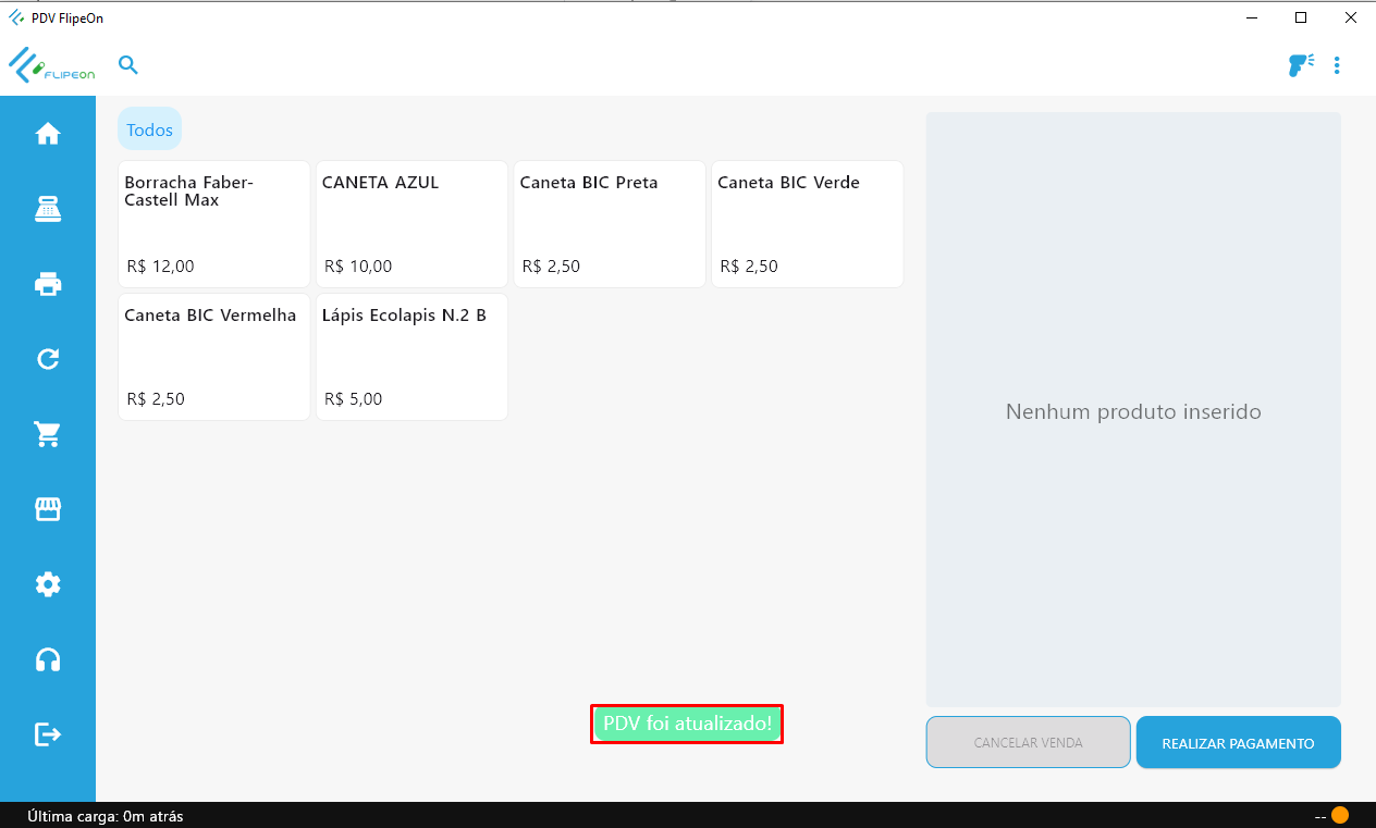 Após cadastrar o produto e sair da tela, o PDV faz uma carga automática dos produtos cadastrados.