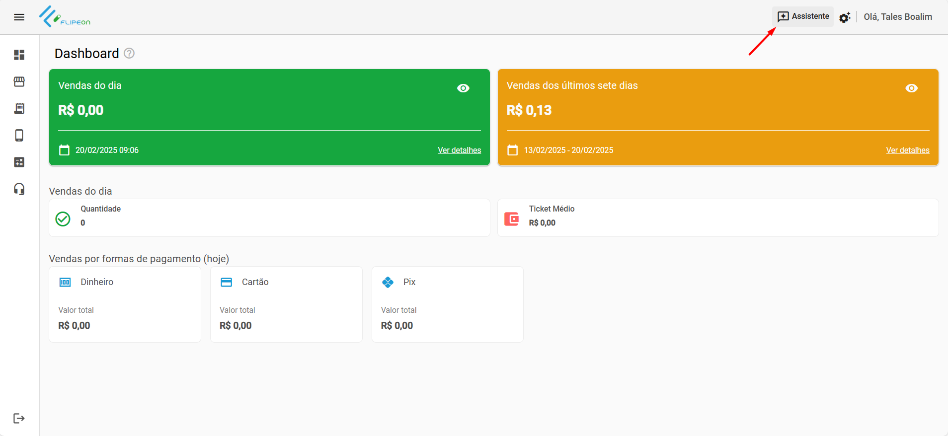 - No painel do administrativo acesse o item Assistente no canto superior direito