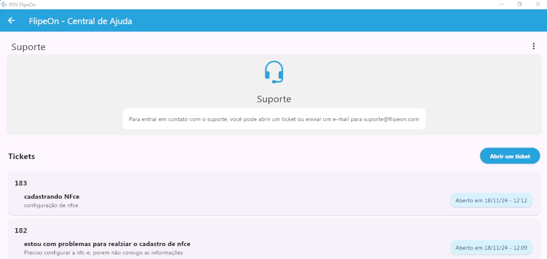 Acesse a tela Suporte em nosso aplicativo e abra um ticket de atendimento. Basta descrever o problema ou sua dúvida, e nossa equipe responderá o mais rápido possível.Enviar um E-mail: