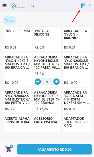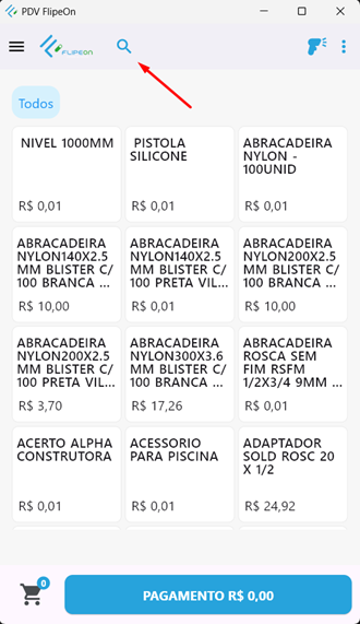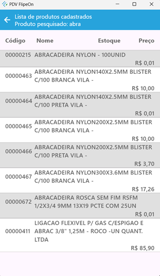 - Pressione sobre o produto na lista para adicioná-lo na venda