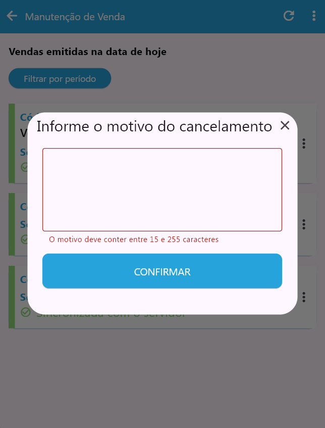 - Informe o motivo do cancelamento
