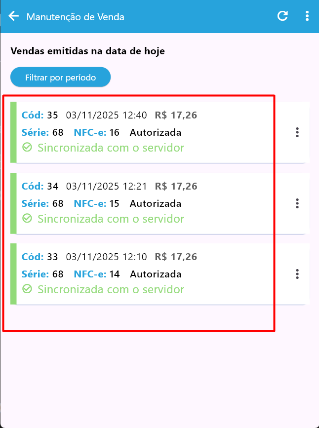 - Será apresentada a Lista de vendas, com possibilidade de filtrar por período