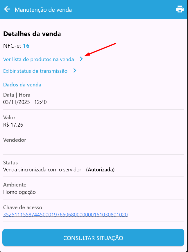 - Visualize também o status de transmissão da NFC-e se for o caso