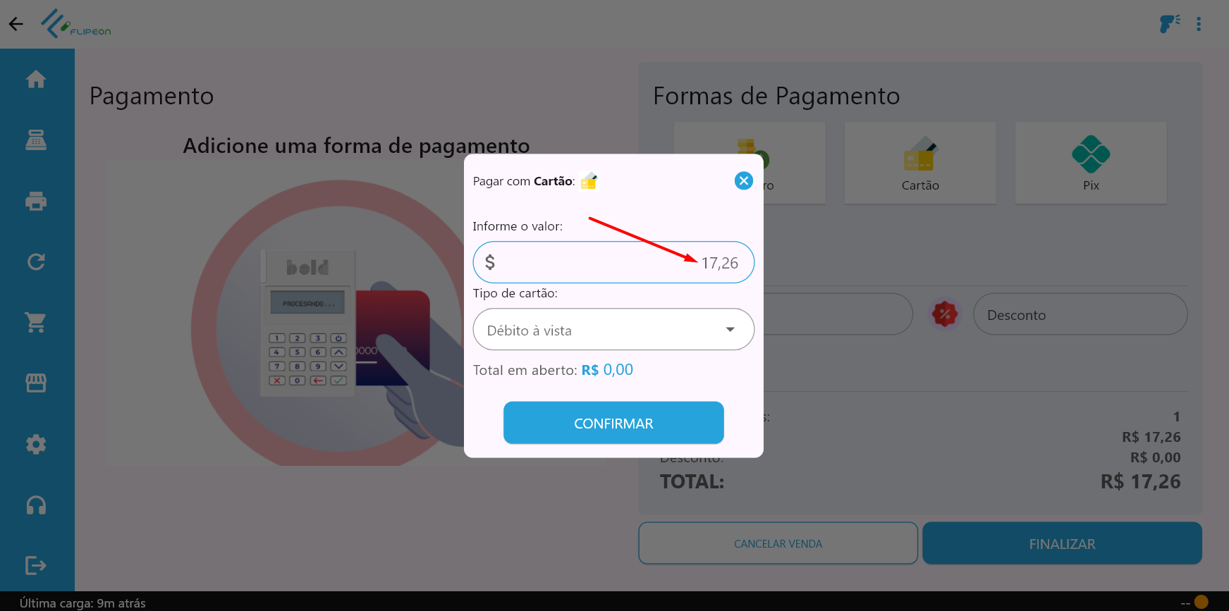 - Informe o valor em cartão