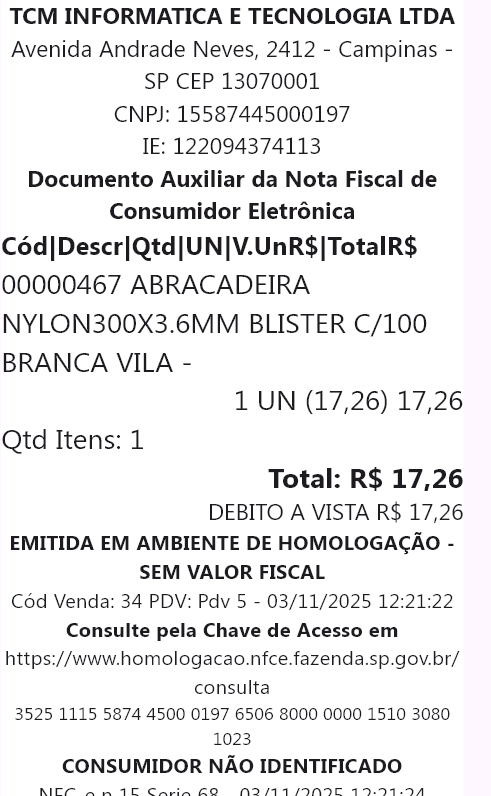 - Pressione Imprimir cupom se desejar ou pressione Nova Venda
