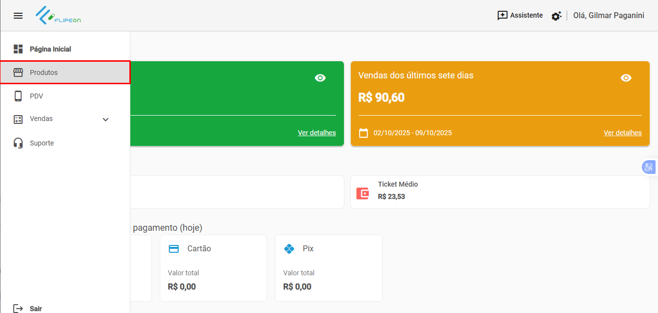 Acesse o menu Produtos.